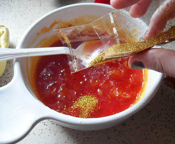 Añadir ultra fino / cosmético / jabón brillo a gusto y revolver. Utilicé el clásico oro amarillo. Las fotos realmente no hacen a la justicia de mezcla. Parecía mágico espacio limo en la luz del sol!
