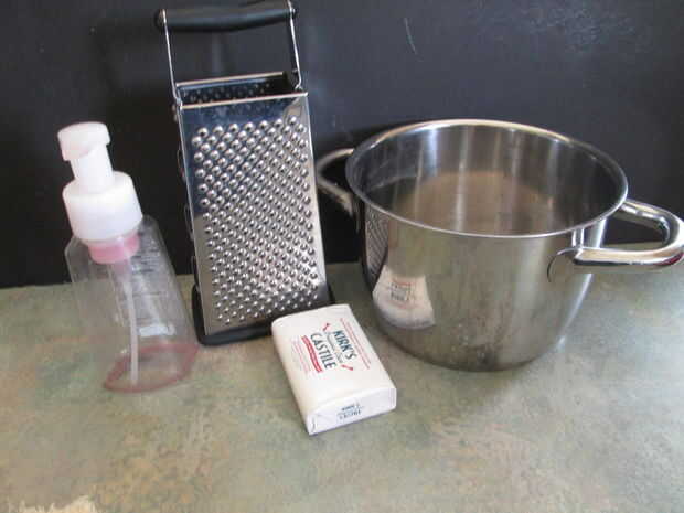 Recipientes limpios con tapa (para almacenar el jabón líquido hasta que se necesite)