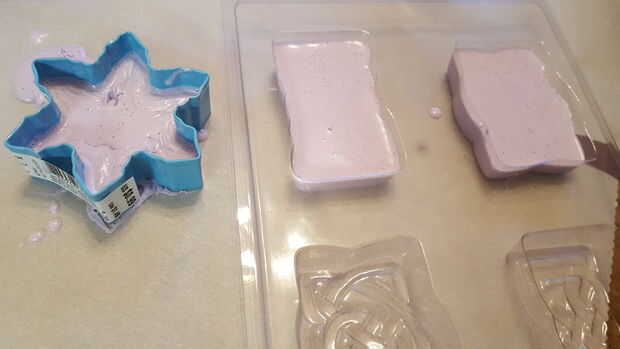 -luego vierte en los moldes, así como el cortador de galletas de copo de nieve.
