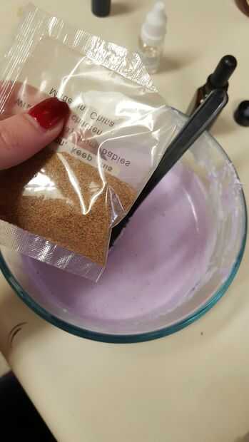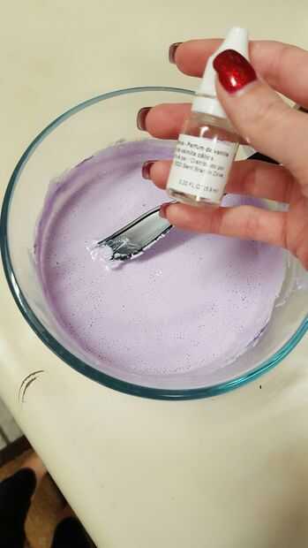 -Luego he añadido 5 gotas de lavanda fresca y 2 gotas de vainilla caliente. (todo depende de en cuánto jabón que estás haciendo, guarde en la vainilla de la mente es un matiz fragancia no necesita mucho)