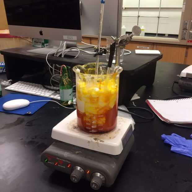 • Una vez que la mezcla ha llegado a 120-130 grados fahrenheit, puede Agregar la lejía lentamente a la solución.