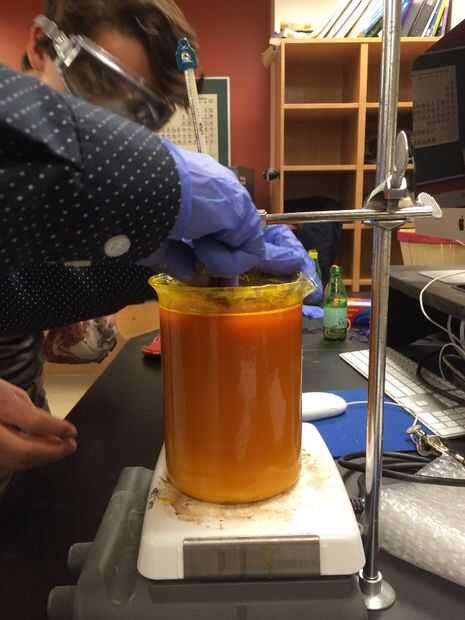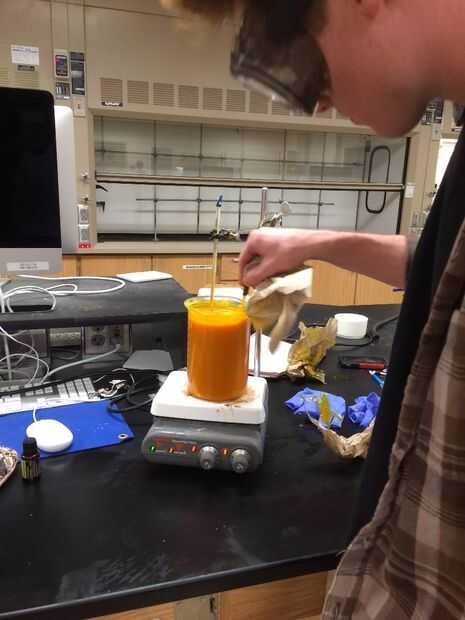 • Comience removiendo la solución para que los aceites están mezclados uniformemente juntos revolver lentamente con una varilla de mezclar y asegúrese de que la solución no escape el vaso.