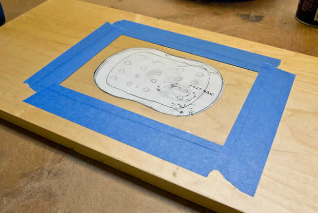La plantilla de papel sobre una superficie plana, como un pedazo de madera contrachapada de la cinta. Poner una capa de plástico encima, algo parecido a una hoja de transparencia es perfecto. El hormigón imitará todo lo se echa contra, por lo que la parte superior será muy brillante si se utiliza plástico liso. La capa de plástico también es importante porque hará quitar la pieza mucho más fácil ya que sólo puede Retire el plástico.