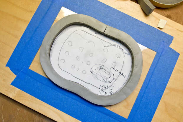 Puede ayudar a hacer una plantilla de papel se puede colocar el burlete uniformemente alrededor de la jabonera. Voltee el plato y traza alrededor de él. Luego marcan donde serán las paredes de la forma. Idealmente las paredes será por lo menos 1/2-3/4" de espesor, por lo que será duradera y menos propensos a agrietarse.