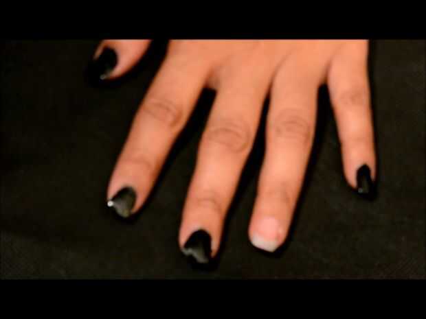 de uñas es divertido! No soy muy bueno en el arte de uñas pero pensé que sería divertido intentar algo que no sea esmalte para uñas. Por lo tanto, utilicé pintura de tela dorada con esmalte de uñas negro. Puede utilizar pintura de brillo también. Mis