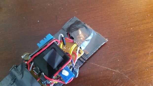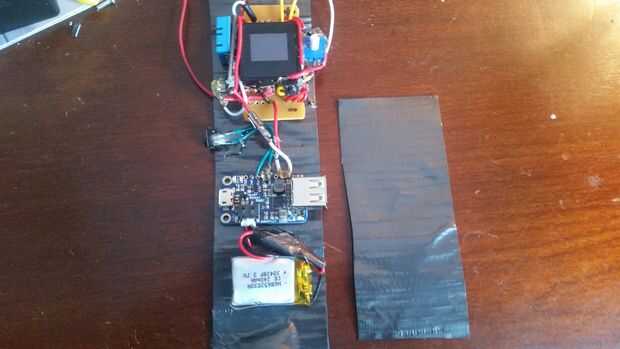 Una vez has conseguido la banda todo agradable y cómoda, usted necesitará decidir donde quieres que todo a la banda. Después de eso, tan solo calientes pegué todo a la cinta del conducto. Tomé otra pieza sobre duplicado de cinta adhesiva y colocarla sobre la batería y y PowerBoost así no tiene que ser visto. En cuanto a los cables de programación, no cortarlas, porque nunca se sabe qué tipo de actualizaciones que haremos. Sólo había liado para arriba y ponerlos bajo alguna cinta en la parte superior. Una vez hecho esto, ponga encendido y Lúcelo con orgullo.