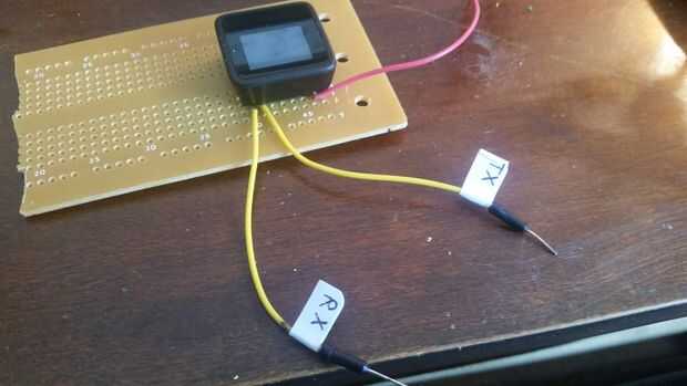 Si usted puede recordar a ese mediocre diagrama de Fritzing, pueden recordar que vamos a tener 5 cables colgándose para programarlo. Si mi fotos no son suficientemente claros, sólo consulte el diagrama de MicroView. Había etiquetado TX y RX para nuestra conveniencia. Como se puede ver, con los cables conectados a Arduino Uno, todo funciona bien!