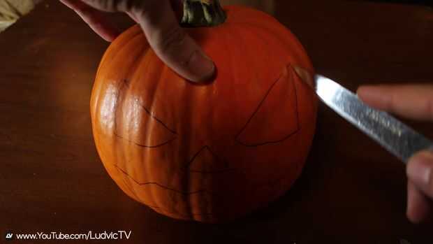 Naturalmente necesita una calabaza vacía para introducir el elemento y la vela, coge un cuchillo y crear algo impresionante, la primera vez tal vez es difícil, pero si dibujas tu estilo en la calabaza en 15 minutos con un poco de paciencia se puede hacer buena Jack-o...