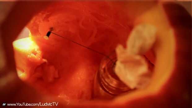 Coloque la jarra con el manganeso en la calabaza y el uso del hierro del clavo al pin todos juntos. Si miras la imagen puede comprender inmediatamente.