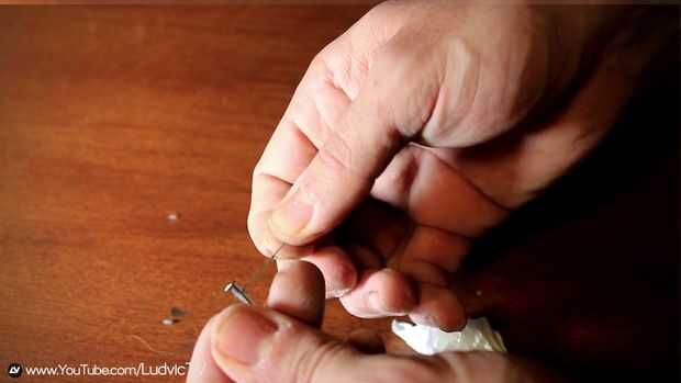 Ahora con una cadena de crear una conexión con el clavo de hierro...