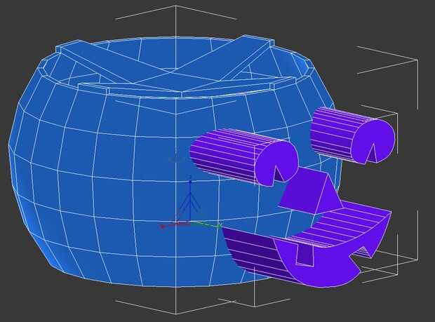 Ahora que viene el paso divertido. Tenemos que dibujar las formas para cortar el cilindro. Trazado las líneas y la extrusión en un sólido. Con la herramienta booleano restar ese sólido del cilindro.