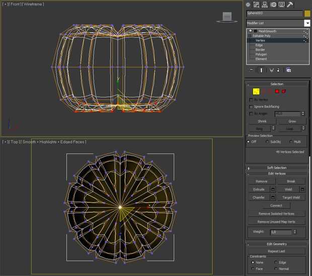 Entonces modifiqué los vértices para dar la calabaza mejor forma aplastada. también puede mover algunos vértices para extraer la geometría perfectamente simétrica.