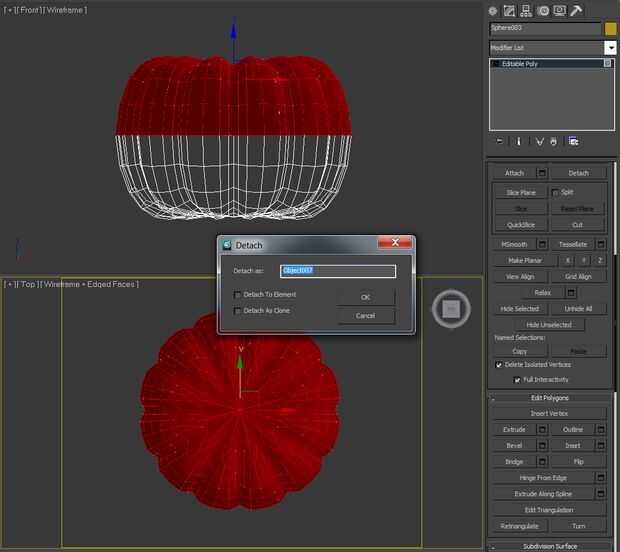 También divide la concha en tho piezas, para que pueda insertar el cilindro, el escudo y los dispositivos eléctricos. Después de partir aplicar el modificador shell, así que para dar un espesor de aproximadamente 1 mm en la base y la tapa de la calabaza. Como valor de segmentos elegir 2, así que podrás crear la cola de Milano.