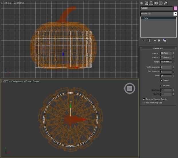 Ahora vamos a hacer el cilindro interno. Creta una pipa, convierte a un poli, y agrandar sus vértices interiores para parecerse más a la cáscara de calabaza.