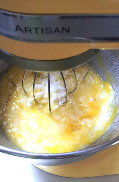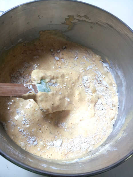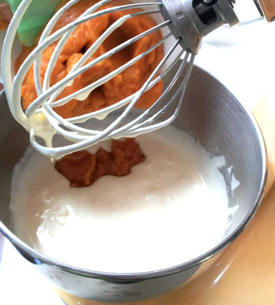 Añadir el puré de calabaza y mezclar en baja velocidad hasta incorporar.