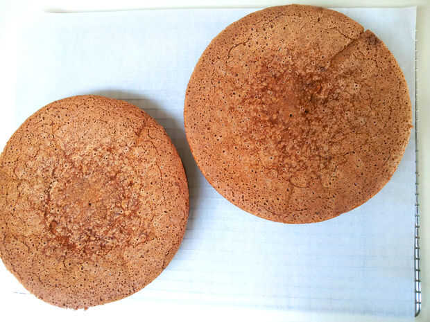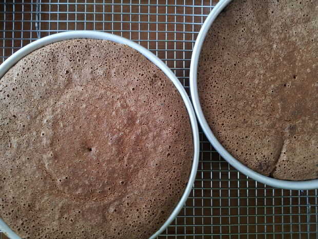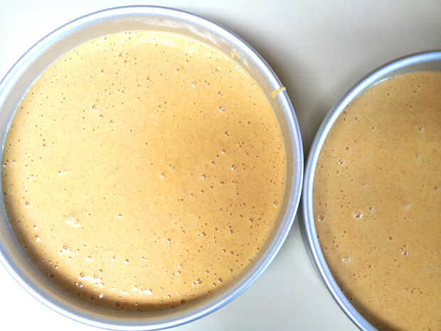 Dividir la masa en dos 8" moldes forrados con papel y engrasado.
