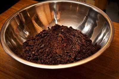 2. Triturar galletas Oreo (u otros cookies/galletas) y mezclar con mantequilla derretida.