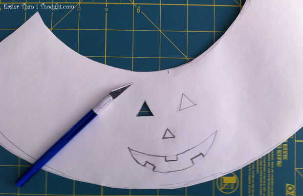 Dibujar una cara de Jack-o-lantern o cualquier forma que usted desea en la plantilla y corta con el cuchillo del exacto.