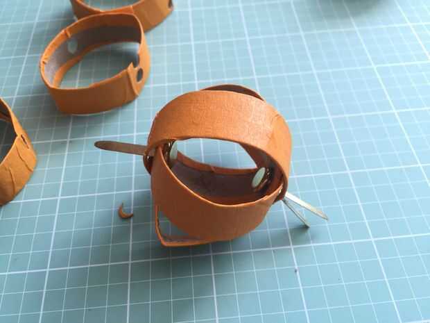 Añadir un eslabón tras otro para asemejarse a un Jack O lantern.