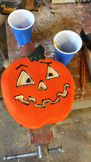 Aquí le damos nuestros proyectos terminados. Mamá les cuelga para arriba con orgullo! Todos están de acuerdo que Jack-o-Lantern de Jay es la más fresca, aunque Tenn es bastante maldito lindo también! Ahora llevar a sus hijos a la tienda y construir algo!