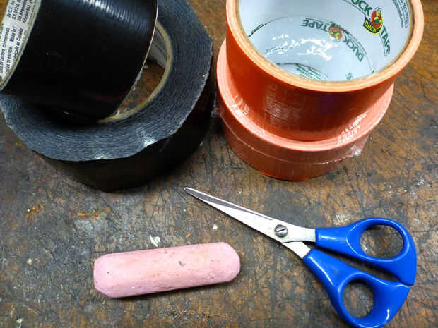 Cinta adhesiva - utilicé naranja y negro - la naranja es marca pato y el negro es marca Scotch. Esta marca pato parecía pegajoso que el escocés. El pato puede quedarse más tiempo, el escocés podría desengancharse limpiador / más fácil
