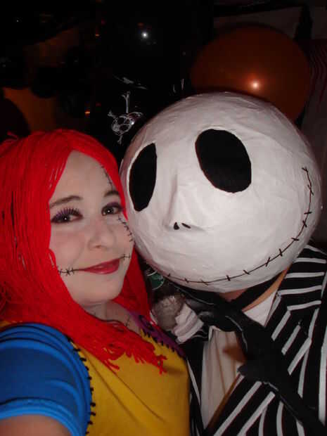 Para Sally encontré unas botas de cuero marrón viejo en una tienda de 2ndhand, una peluca roja lana en una tienda de disfraces y me compré unas medias blancas y un par de guantes largos blancos. Usé pintura de cara blanca para mi cara y cuello blanco y delineador líquido para dibujar puntos en mi cara.