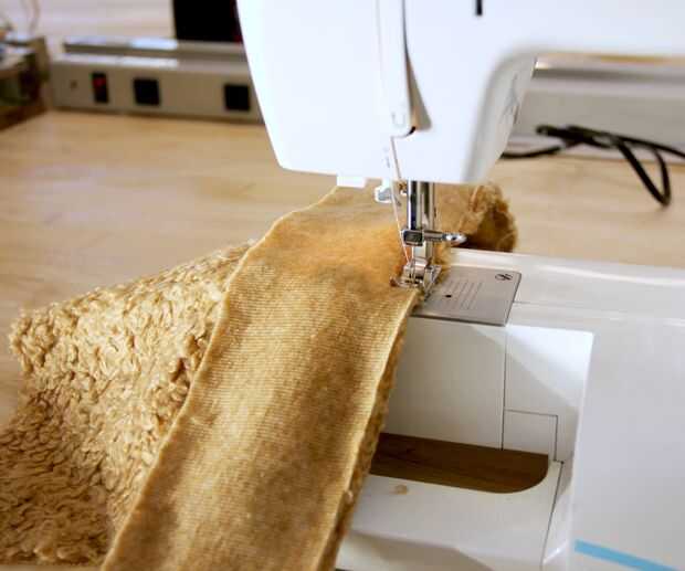 Usando una máquina de coser, coser la pieza recta larga para ambas mitades de la campana a lo largo de las líneas de 'costura' se indica en los patrones. Asegúrese de que todas las piezas terminan de furry lado hacia fuera!