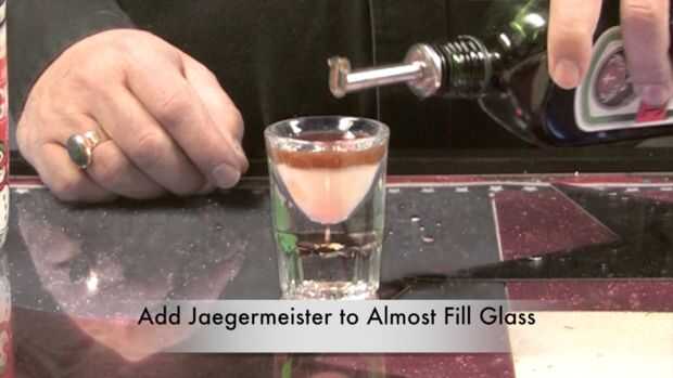 A continuación, llenar casi a la parte superior de vidrio con Jagermeister.