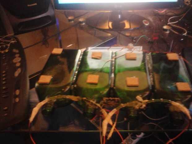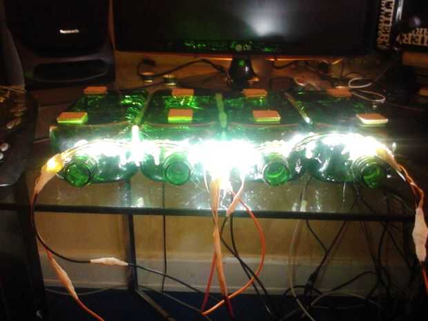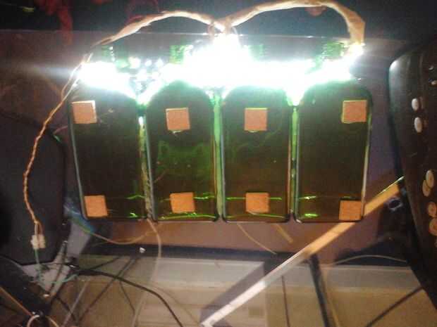Qué es básicamente utilizando el cable negro y rojo de un viejo cable USB (el mío es un teclado viejo), wireing es un interruptor, luego wireing el led piezas, pruebas y pegarles a los cuellos de las botellas