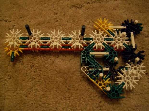 pepinos Hola a todos compañeros Knexers y los recién llegados. mi nuevo disparo, rifle de largo alcance KVG, con alcance real, bípode plegable, verdadero gatillo, cualquier shooter munición, 1,20 m de altura, 110 pies gama con oodammo (conector rojo