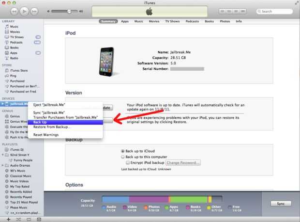 Paso 2: haga clic derecho sobre su nombre de ipod (en la barra de la izquierda)