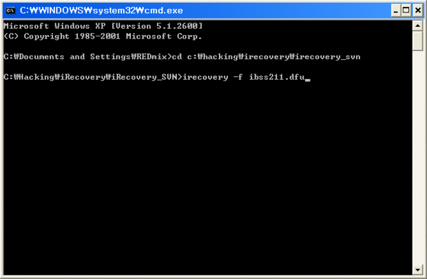 Paso 5: Escriba o copie y pegue el iRecovery -f ibss211.dfu