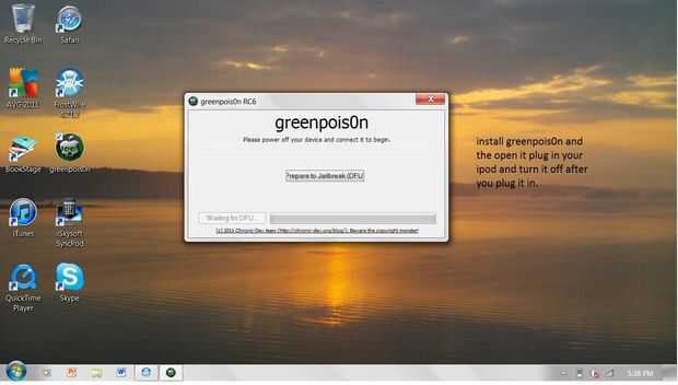 POR FAVOR, LEA!Como ustedes saben, jailbreak un iPod es violar seguridad de manzanas en la brecha, por incumplimiento de cualquier orden. usted debe leer sobre jailbreaking antes de comenzar este proyecto.por favor no me informe para hacer este tutor