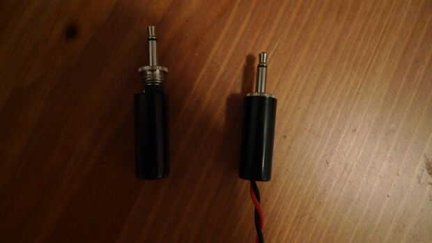 Para este tipo de enchufe, sueldan dos cables. Usé el rojo y negro.