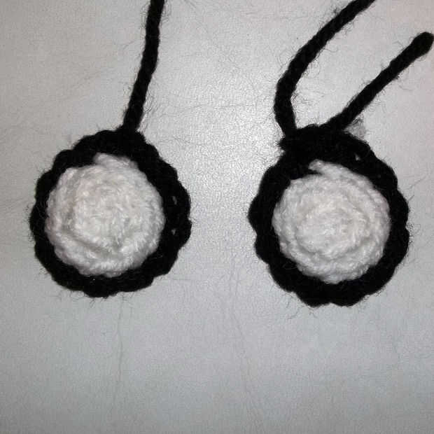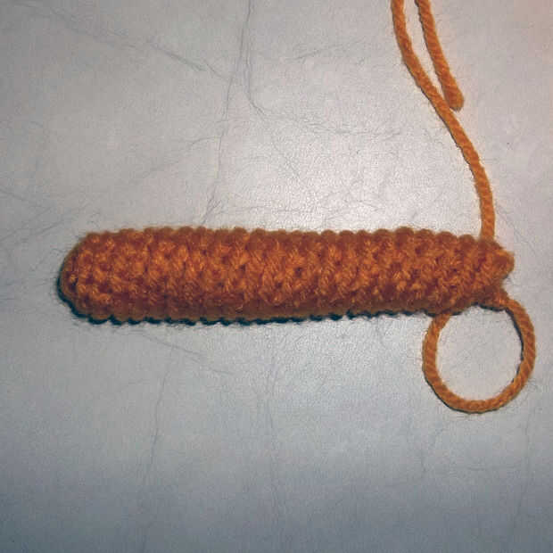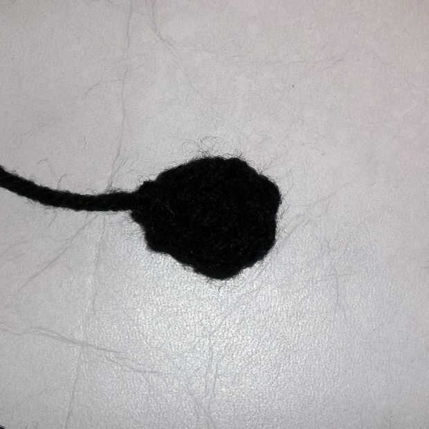 Cosa cerrada. Fije apagado. Deja una cola larga para atar. Cosas con relleno de poliéster. Ponga a un lado.