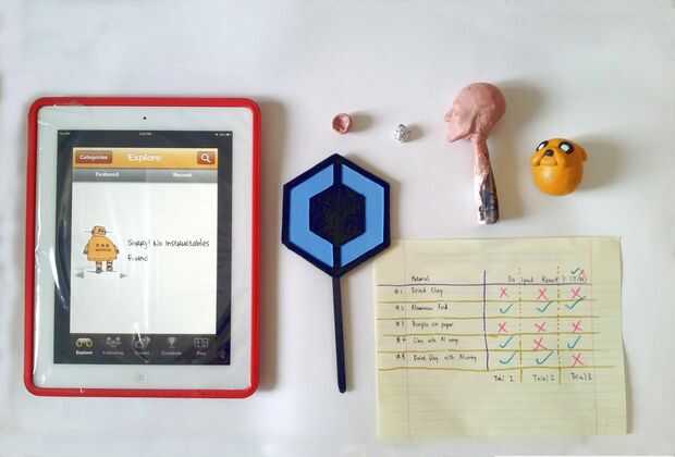 Tocó mi ipad con los materiales de seguimiento 5 3 veces cada uno y ver que el condensador reacciona.