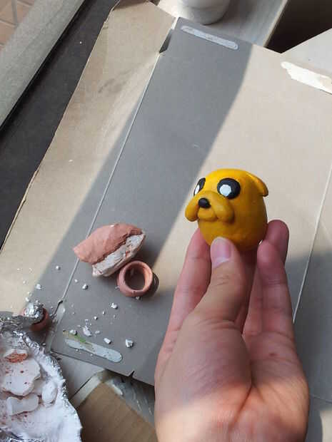 Como un truco común de artista o de escultores, nos gusta utilizar papel de aluminio para lograr una forma general o armadura, luego envuélvalo con arcilla de modelado, con el fin de ahorrar la arcilla y reducir el tiempo de secado de aire de secado por aire. Quizás hayas escuchado del uso de metal de las patatas fritas bolsa y envolver su pluma con él. ¿Mi hipótesis: Jake tiene un núcleo de aluminio, es esta la razón por qué él puede servir la misma función? ¿O contribuyan con la arcilla y la pintura de acrílico efecto?