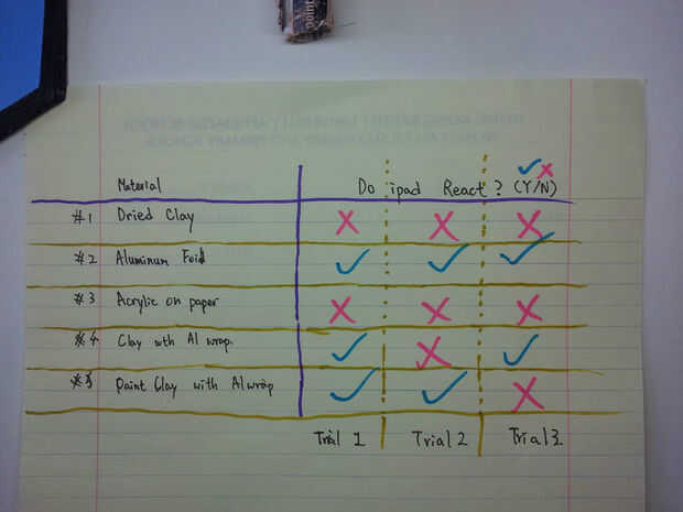 Por lo que parece, arcilla con base de aluminio (con o sin pintura) no es estable. El hecho es que toca el ipad con 3 muestra de tapa de corazones de aluminio diverso grueso de barro, de arcilla de espesor inferior a 5 mm, está funcionando perfectamente. Una vez que la arcilla que cubre la base de aluminio (espesor de 5mm) es demasiado gruesa, la pluma no puede funcionar como ideal como antes.