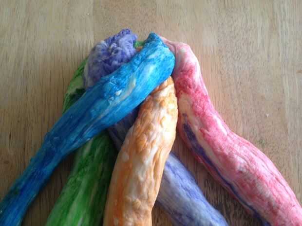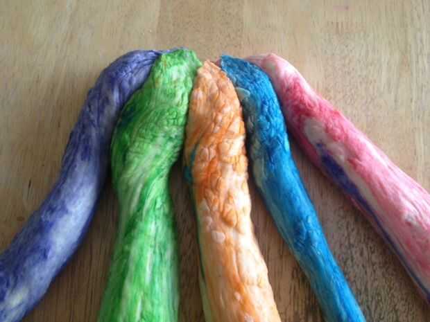 Después de 20-25 minutos de descanso, rollo cada masa en forma de cuerdas (como se puede ver que mis cuerdas son baches, para evitar eso, cubrir la masa antes de dejarla subir y una vez resucitado, amasar - si no eres tan perezoso como me tho :))