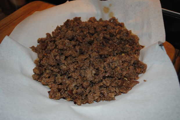 Una vez que esté cocinado bien, retirar del fuego, colocar sobre papel absorbente (para eliminar algunas de la grasa) y dejar enfriar.