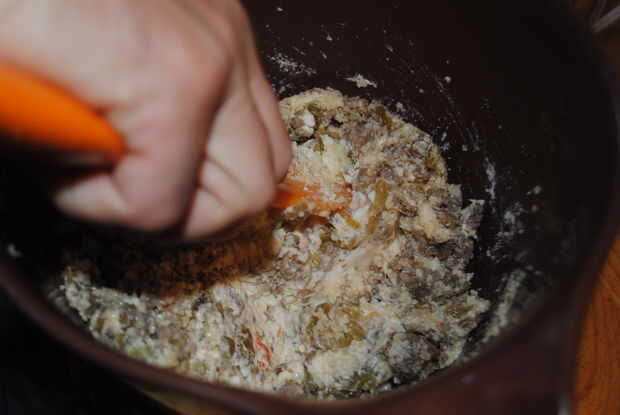 Nota: esta mezcla puede ser hecho antes de tiempo y poner en la nevera para luego rellenar y hornear.