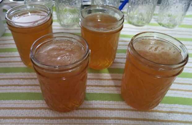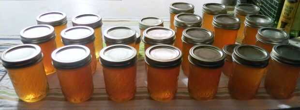 Vierte la jalea caliente en caliente hacer esterilizar tarros de conservas, dejando un espacio libre de 1/4 de pulgada. Limpie los bordes del tarro con un paño húmedo; ajustar las tapas punta de los dedos apretado. Proceso lleno de tarros en una olla de agua hirviendo durante 5 minutos. Iniciar sincronización cuando el agua vuelve a hervir. Apague el quemador, retire la tapa y deje frascos enfriar durante 5 minutos, quitar frascos de la olla; enfriar sobre rejilla de alambre, o toalla de cocina en encimera.