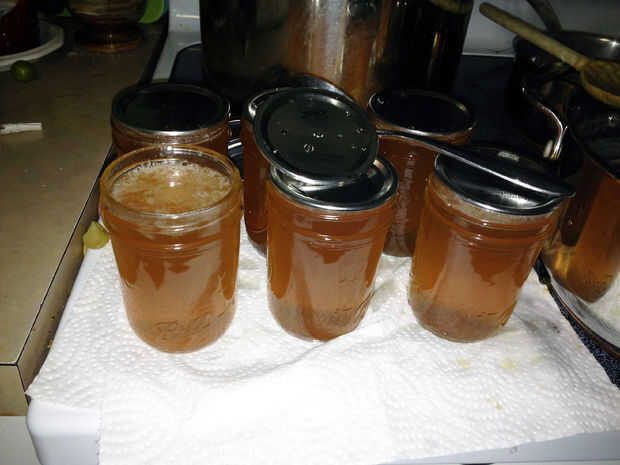 Como con todas las recetas de mermelada y jalea, existe la posibilidad de conseguir un poco de quemaduras fruto caliente salpique, así o bien usar calcetines o un trapo frío útil para agarrar y limpie su brazo para que no tenga que dejar una olla hirvienda. Asegúrese de que uso una olla lo suficientemente profundo para tener unas pulgadas de aire libre en la parte superior.