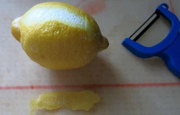 Usando un pelador de verduras, retire la parte coloreada de la cáscara de uno de los limones. (No quitar la parte blanca). Cortar la cáscara en tiras finas (no cortarlas porque creo que las cáscaras más grandes son más fáciles de eliminar); dejar de lado. Cortar los limones restantes por la mitad; exprimir limones para jugo. Medida 1/2 taza de limón jugo. (Reserva el jugo restante para otro uso.)