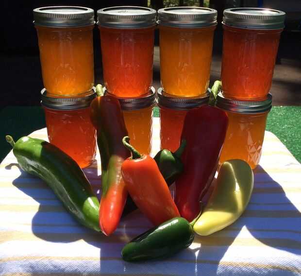Una de las primeras recetas que aprendí a puede, y ahora hago muchos lotes cada otoño. Me encanta el dulce y picante para que esta jalea dulce aromatizada con pimientas picantes es un favorito mío. Si todo que hizo fue calentarlo y servirlo sobre un bloque de queso crema con galletas y vegetales, usted sería feliz que hizo. He encontrado muchos otros usos, jalea de la pimienta caliente hace un gran esmalte para pescado, pollo y cerdo; aún mejor cuando se mezcla con jugo de limón y cilantro. También un gran esmalte para las verduras, zanahorias, siendo particularmente sabroso.