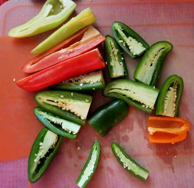 12 oz de jalapeños (aproximadamente 12 med) (yo uso una mezcla de pimientos, que van de suave a caliente)