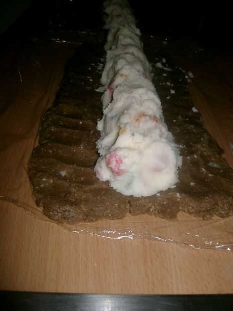Pongan la pasta blanca en la mitad (dividirlo también)...