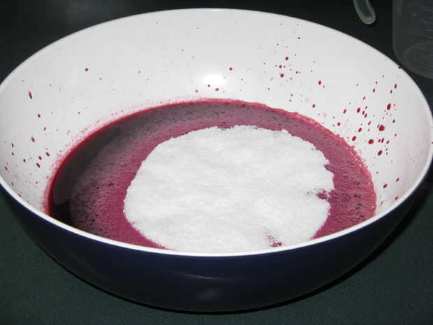 Agregar el dos tazas de edulcorante y la gelatina de dos paquetes para el jugo de uva.