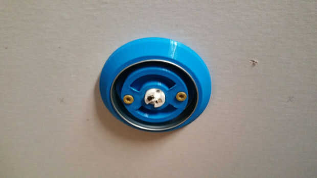 Perforé un orificio de 1" en el yeso junto a un trozo de fleje, esto me permitió fijar la cincha y los cables por encima de los pescados. La jalea frasco simplemente hilos sobre su anillo de metal. Jugaba con tinte el vidrio como los bulbos pelados son difíciles de mirar. Aerosol-pintura del blanco era el más fácil en los ojos, pero atenúan la salida. Vidrio esmerilado de la aerosol-pintura dio un agradable en el medio y es lo va a utilizar en mi proyecto.