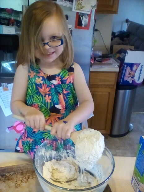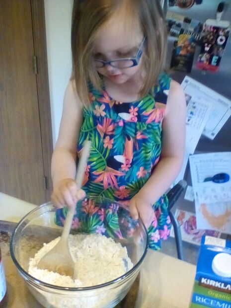 Mezclar 1 taza de leche con 2 tazas Bisquick. Remover hasta que espesa y pegajosa.